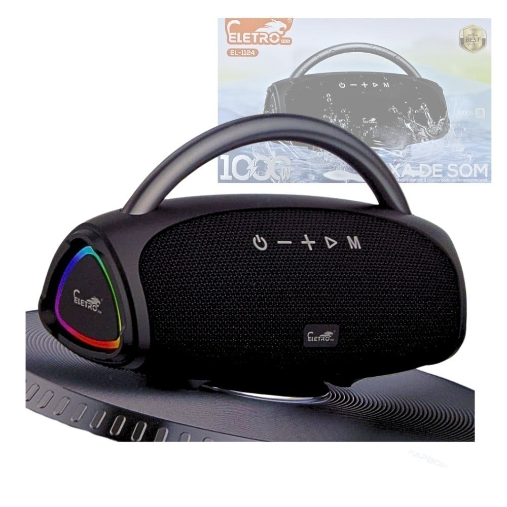 Caixa de Som Bluetooth Eletromex – 1000W PMPO, À Prova D'água IPX6, LED RGB, TWS, Bateria Recarregável – Ideal para Festas e Ambientes