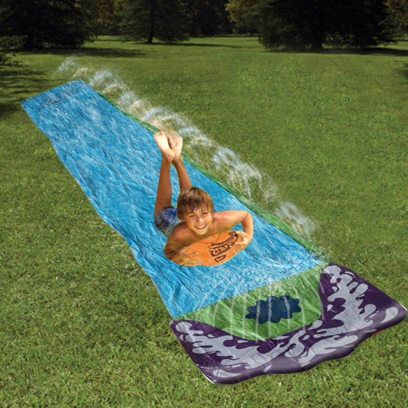 Fácil e simples de usar! Basta conectar uma mangueira nele e ligá-la! Acompanha bicos adaptadores para as mangueiras! Para deixar a diversão ainda mais radical derrame um pouco de sabão em pós ao longo do tapete para deslizar muito mais rápido!